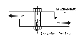 ボルト締結構造の不具合として、ゆるみの他、被締結体のすべりに起因するものがある。例えば図1のように、位置決めを目的とした締結構造の場合、すべりを防ぐためには、接合面の摩擦力の増大が有効である。図2に、摩擦係数の増大策の例を示す。(参考文献:「ねじ締結概論」酒井智次著、養賢堂)
