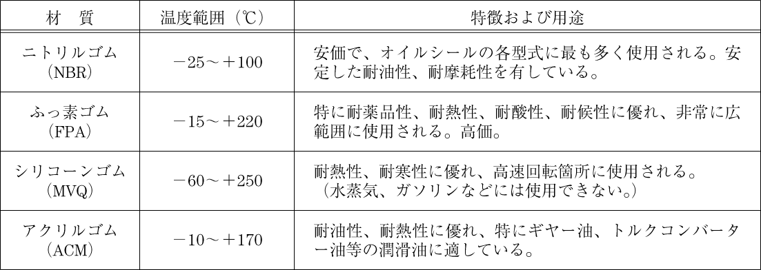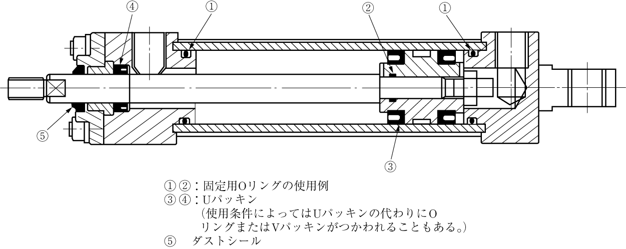 シール機能をもつ機構要素として、Oリング、ガスケット、Uパッキン、Vパッキン、ダストシール、オイルシール、メカニカルシールなどがある。その中でOリングが特に広く用いられる。