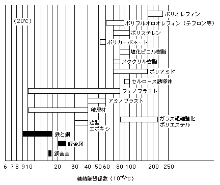 有機材料の線膨張係数は金属に比べて、約1桁大きい。