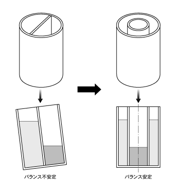 サイロのような高く大きな貯蔵設備では、1基で多種の粉体・液体等を分割貯留するように要求される。このため内部に仕切りをいれるが仕切り板は、重量のバランスをとるため、上から見て点対称に設置するのが好ましい。