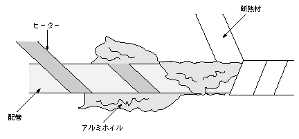 配管をヒータで加熱し保温する場合、ヒータを均一に巻いて巻きムラを作らない、ヒーターと配管をよく密着させる等に留意する。真空装置を加熱して吸着ガスを放出させる時も、本例と同じように、ヒータを巻いてアルミホイルをかぶせて加熱する。