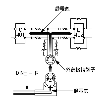 電子機器のIC(破壊耐圧500V)が破壊した。これは、電子機器に接続した時、図1の矢印のように、帯電されたDINコードから、4〜6kVの静電気が流れたことが原因であった。対策として、図2のように、外部接続端子に4.7kΩの抵抗を追加した。